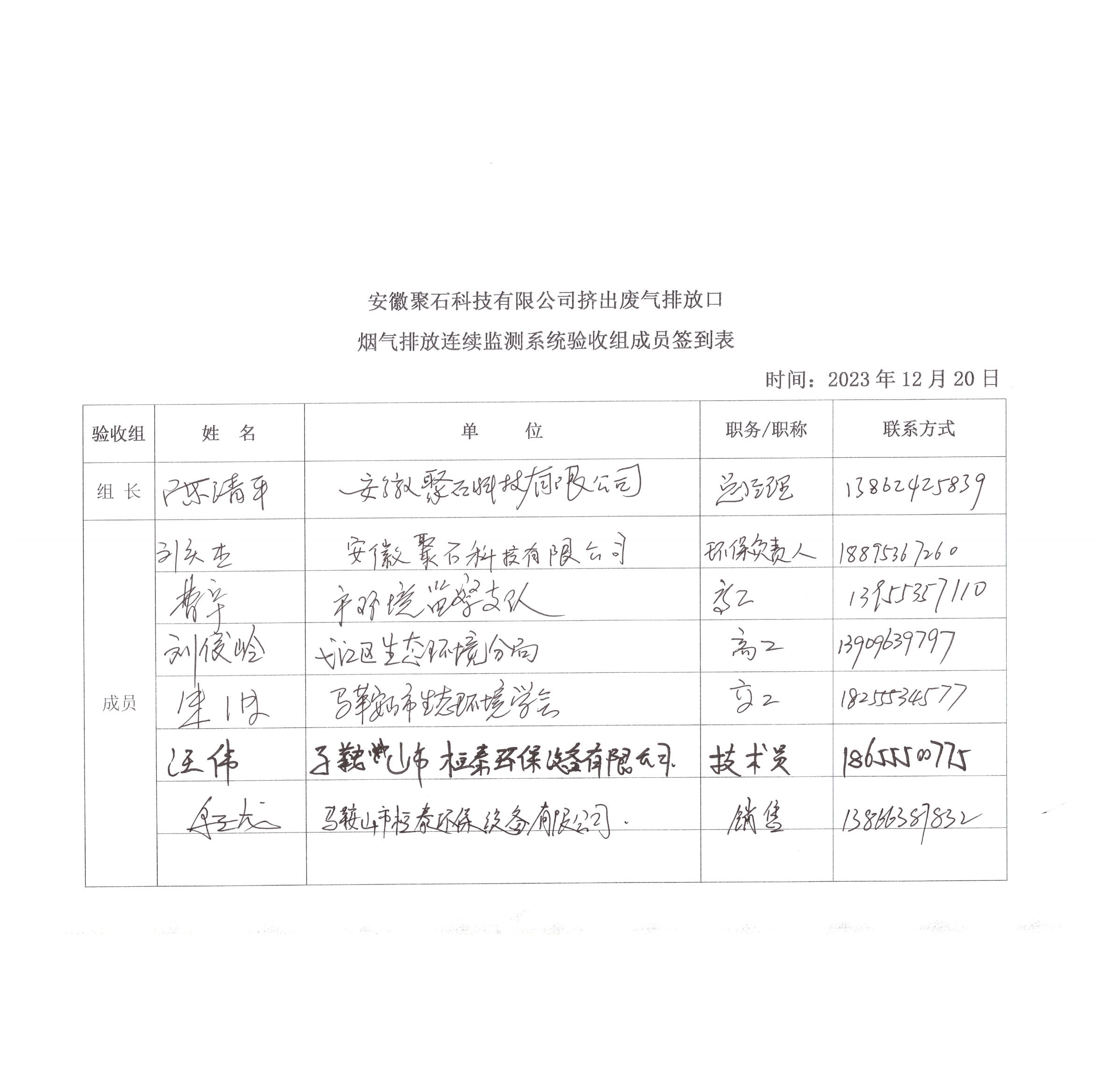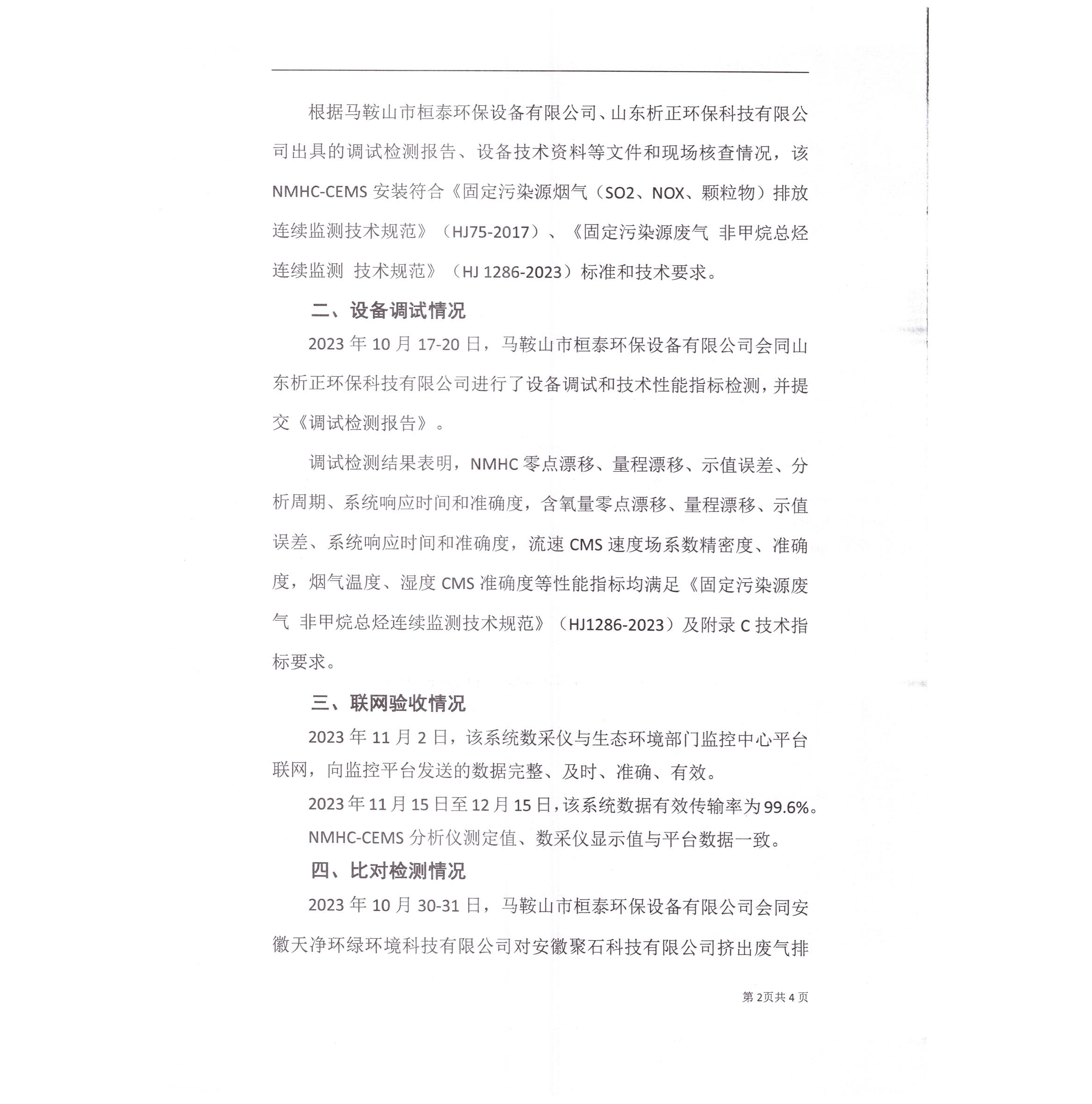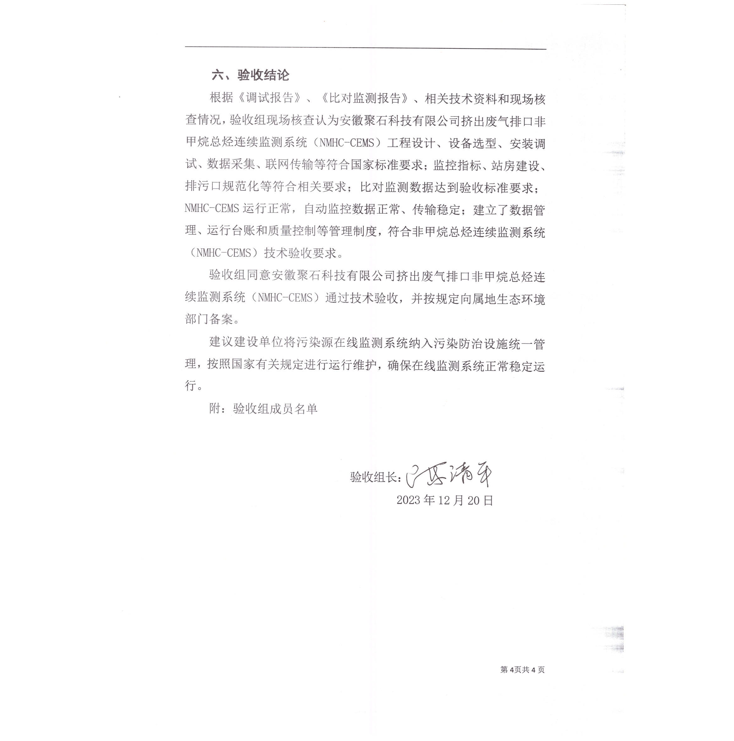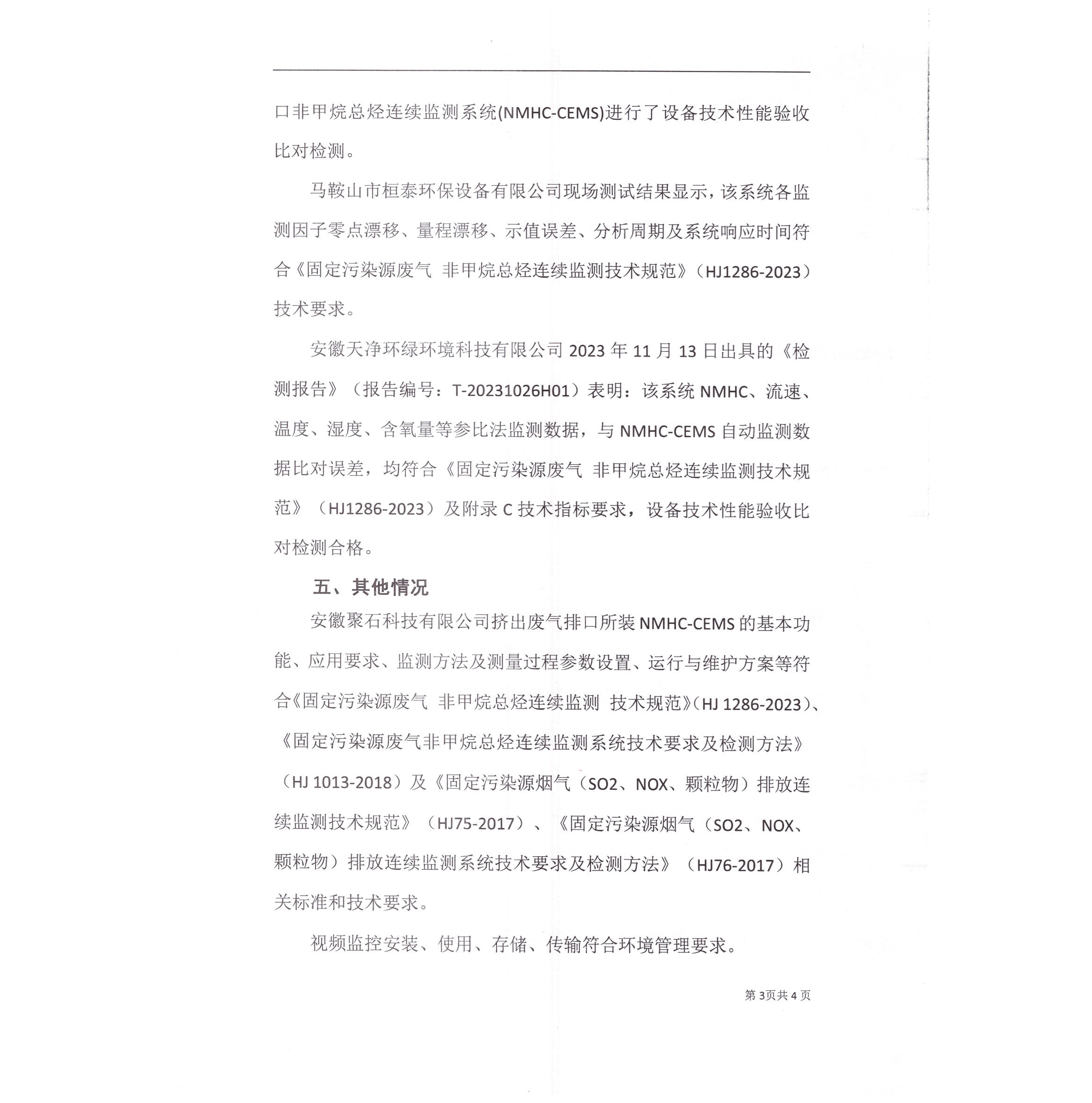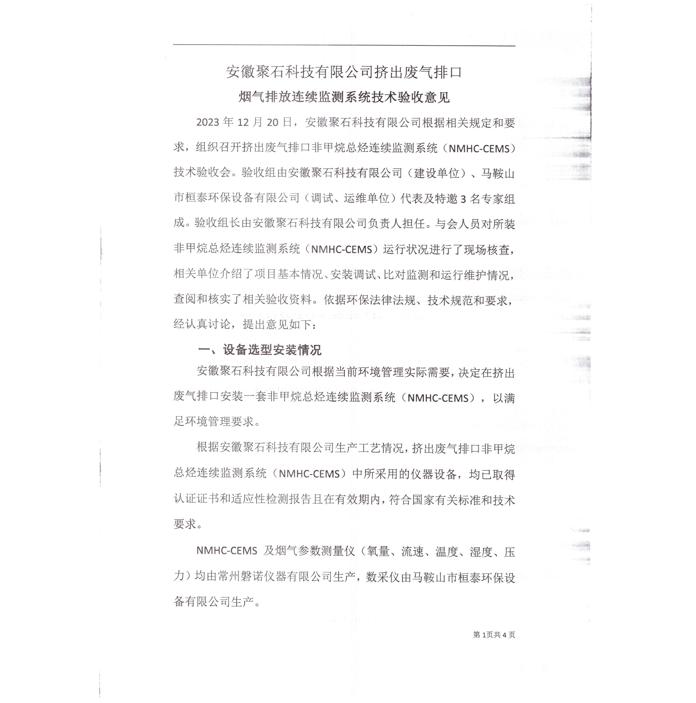 安徽聚石科技有限公司擠出廢氣排口-煙氣排放連續監測系統技術驗收意見
