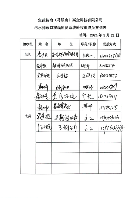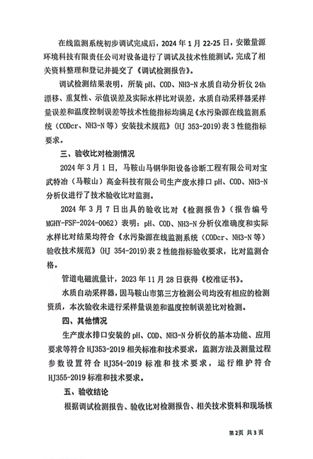 寶武特冶(馬鞍山)高金科技有限公司—污水排放口在線監測系統技術驗收意見