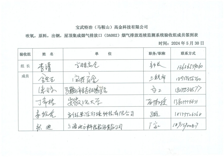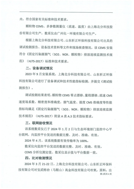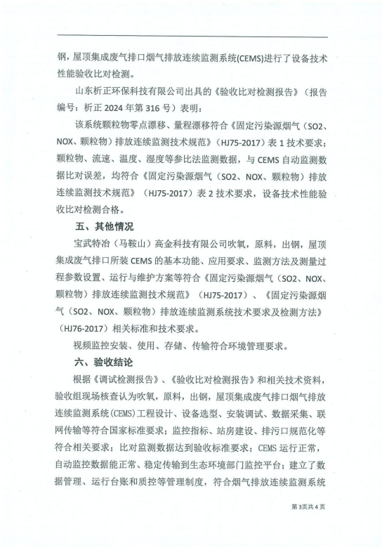 寶武特冶(馬鞍山)高金科技有限公司吹氧,原料,出鋼,屋頂集氣排口固定污染源煙氣(顆粒物)排放連續監測