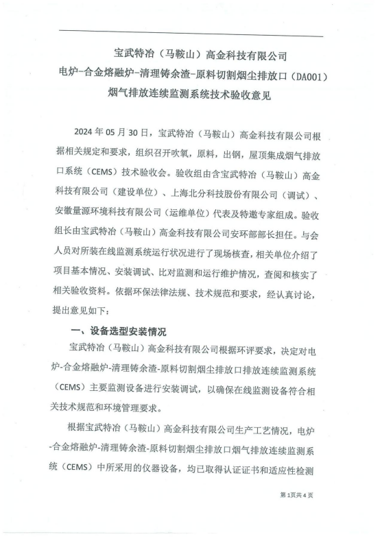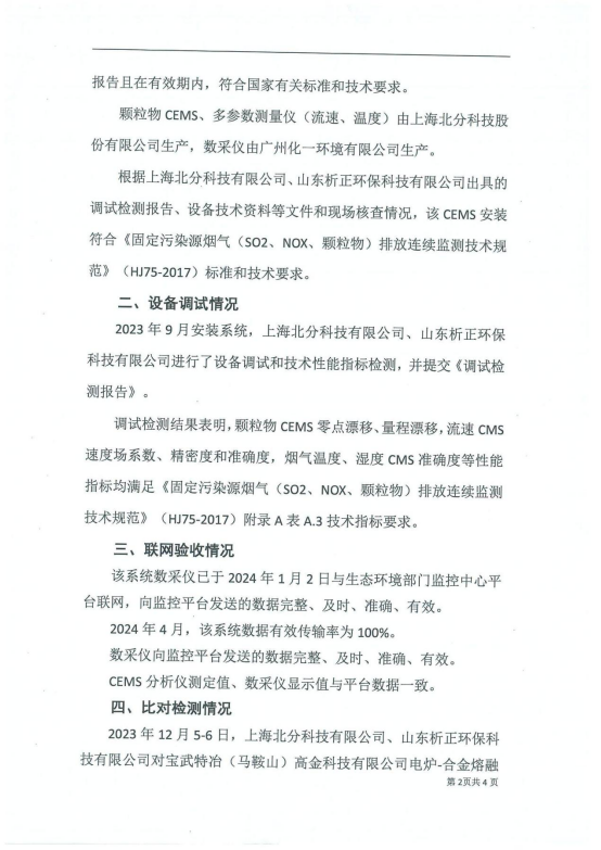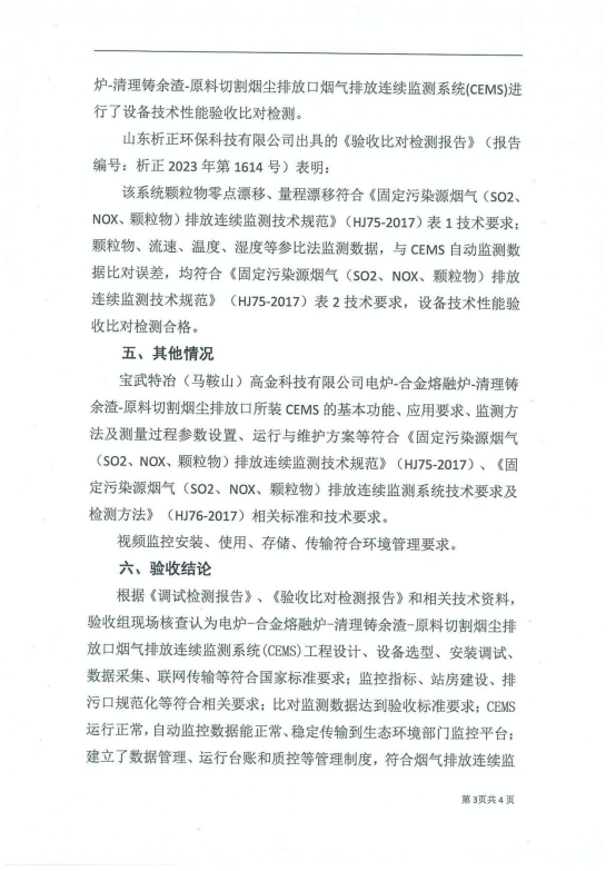 寶武特冶(馬鞍山)高金科技有限公司電爐-合金熔融爐-清理鑄余渣-原料切割排口固定污染源煙氣(顆粒物)