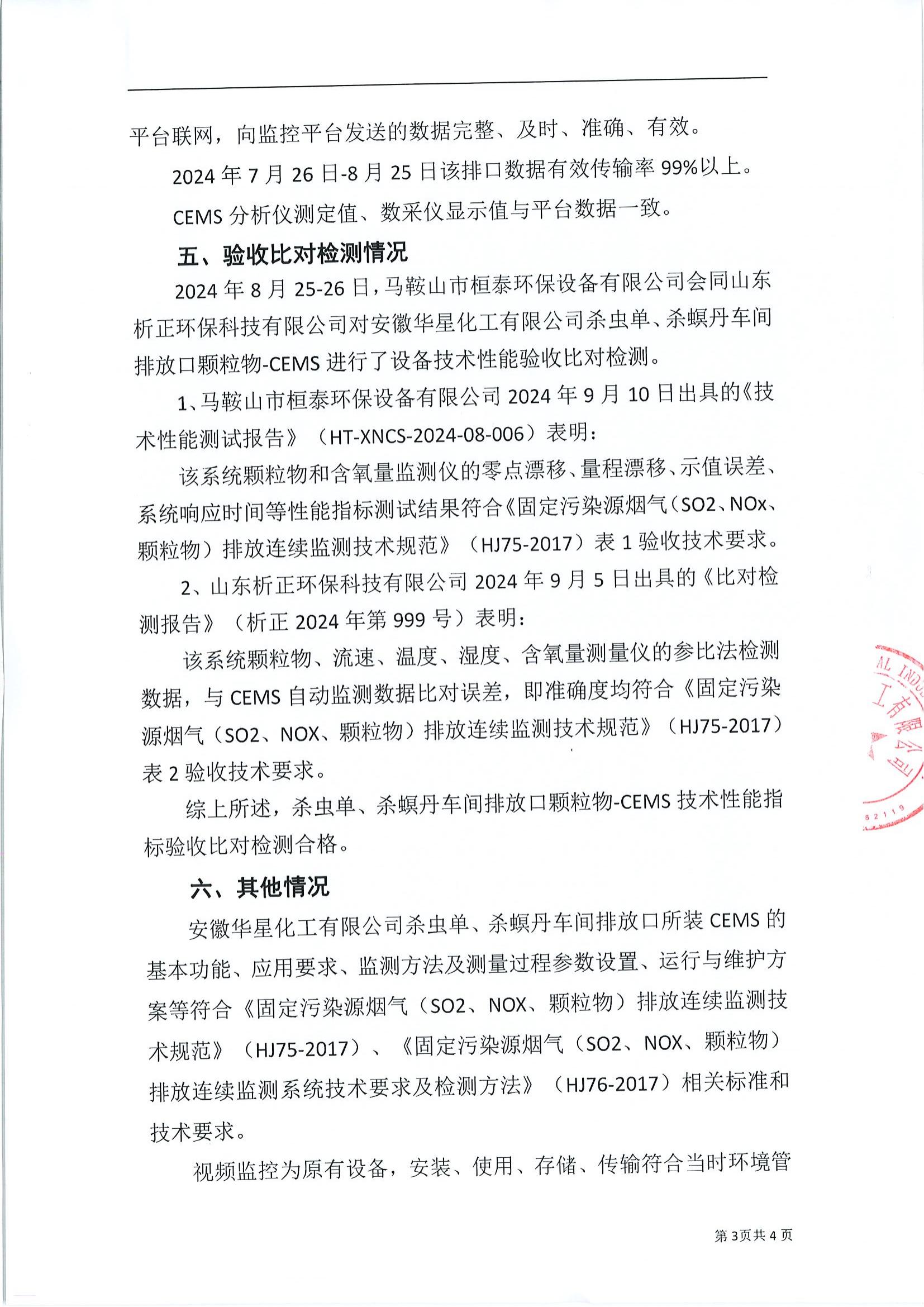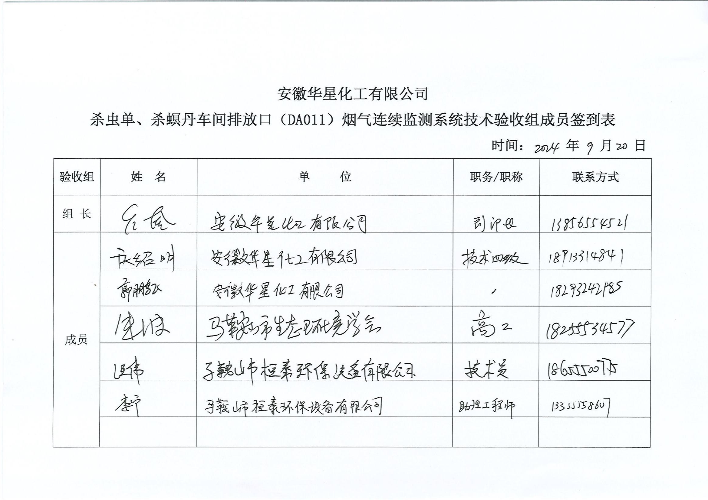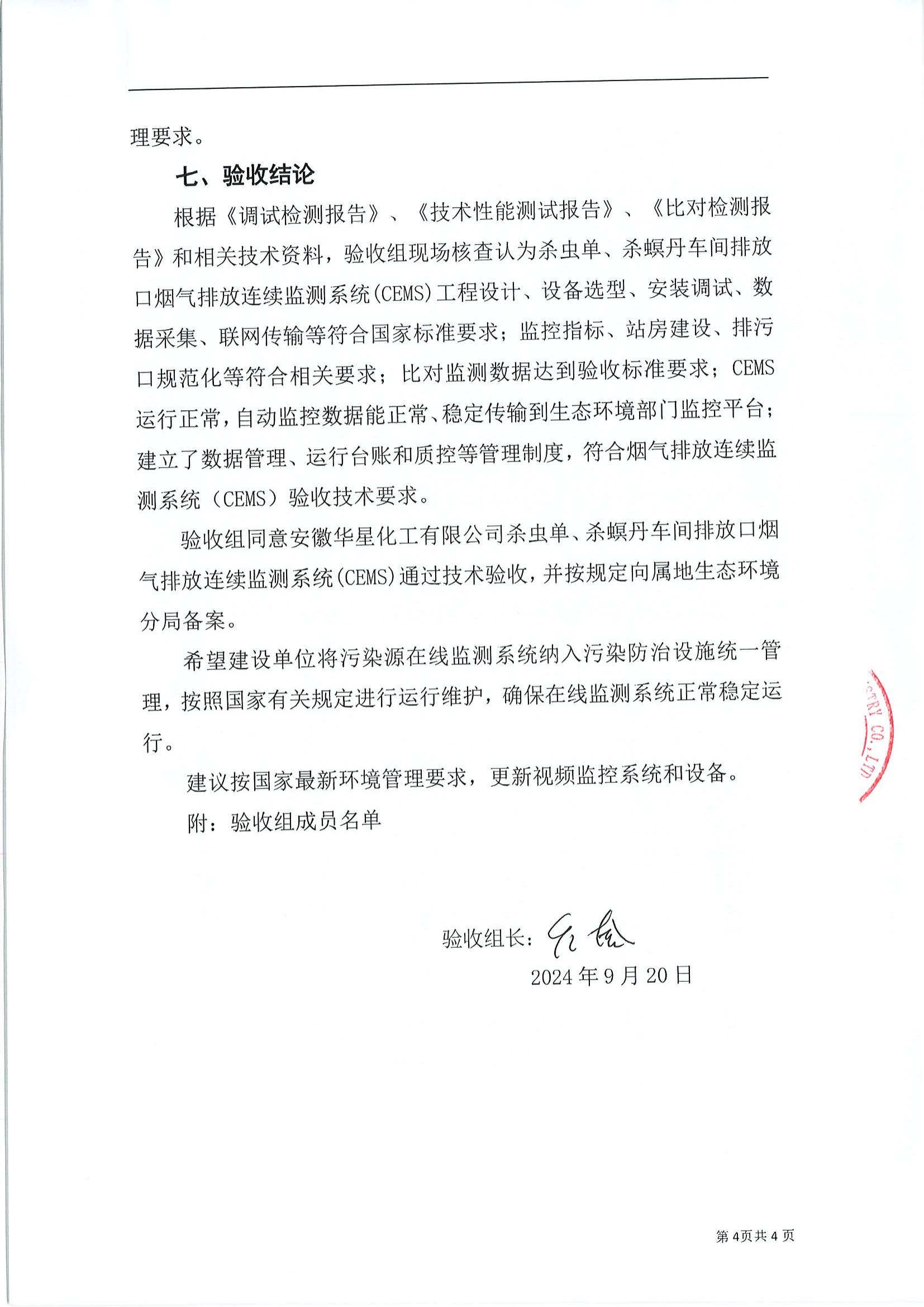 安徽華星化工有限公司殺蟲單、殺螟丹車間排放口煙氣排放連續監測系統技術驗收意見