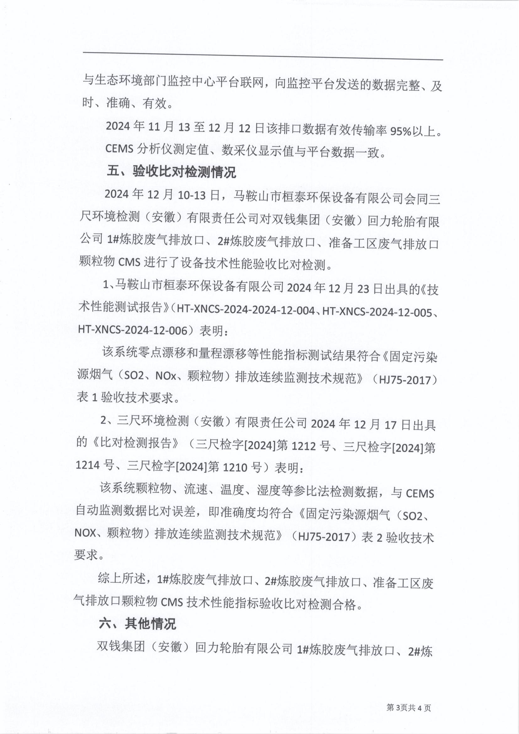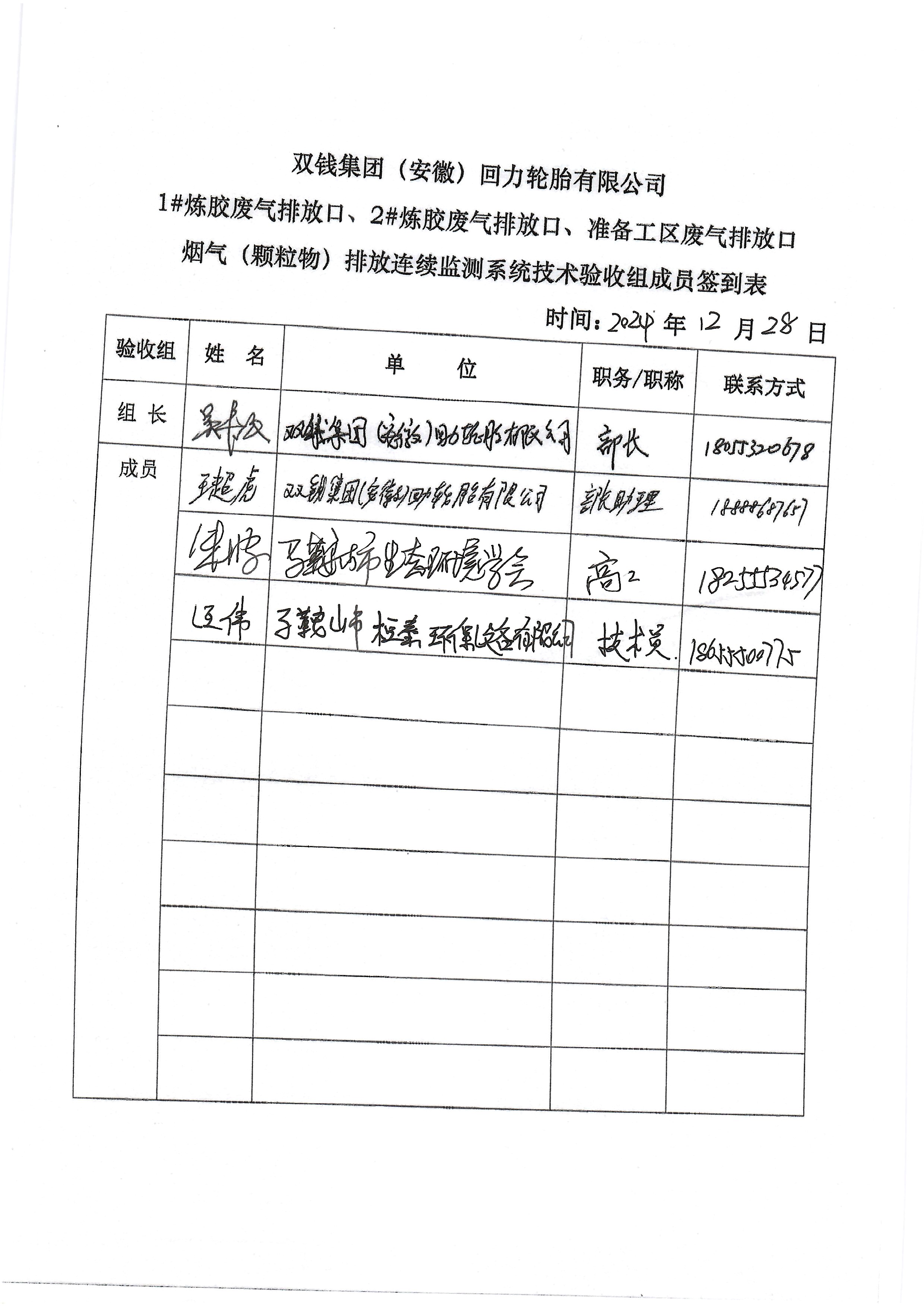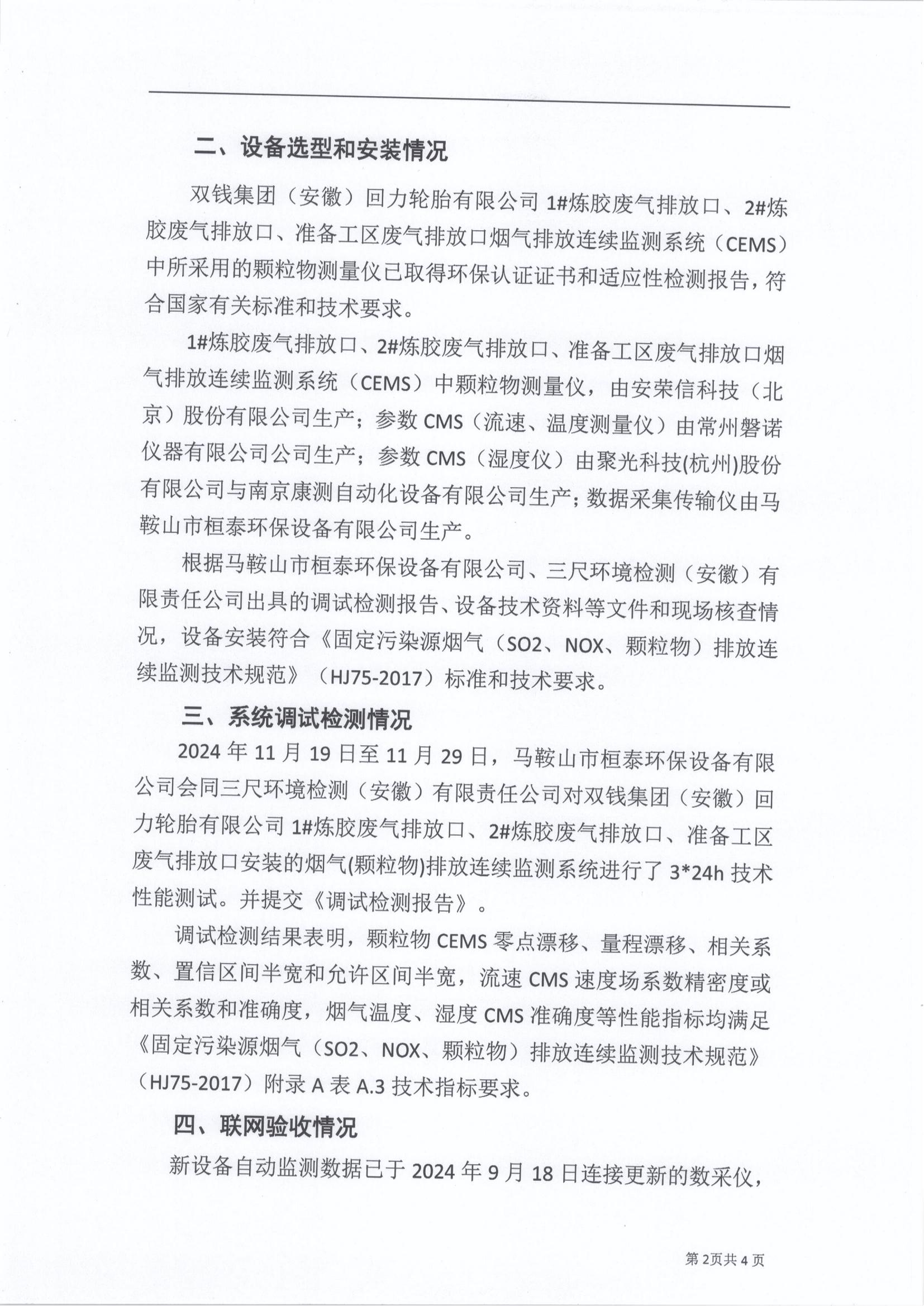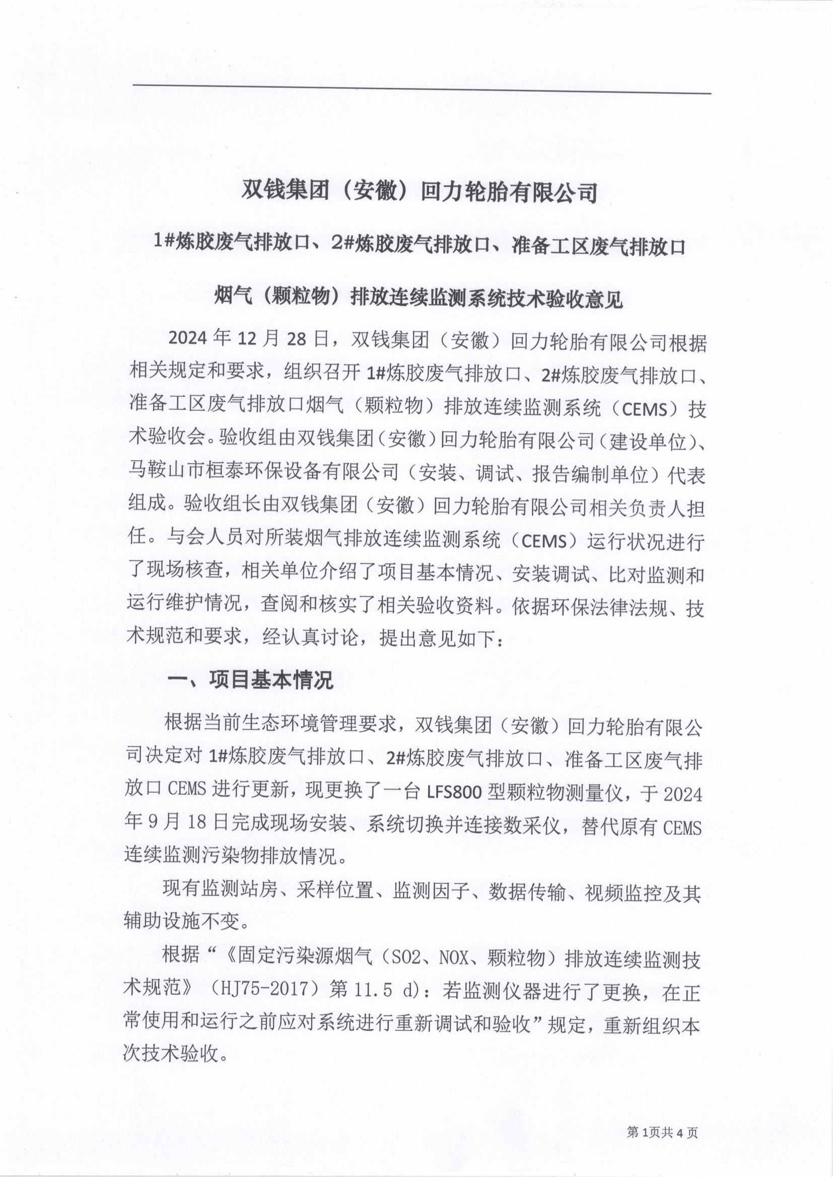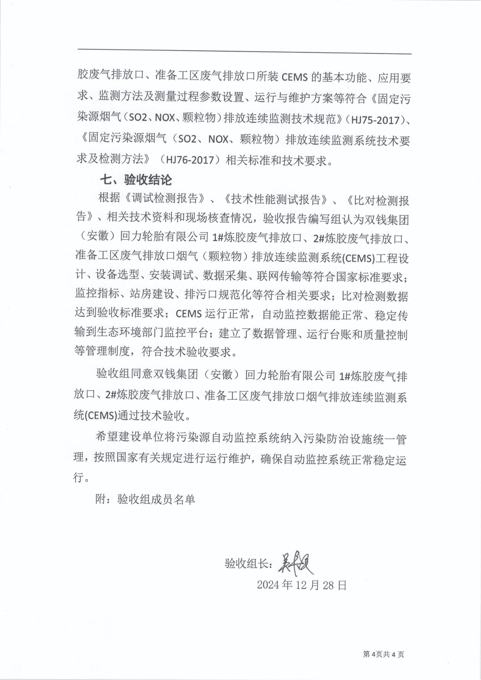 雙錢集團(安徽)回力輪胎有限公司煙氣(顆粒物)排放連續監測系統技術驗收意見