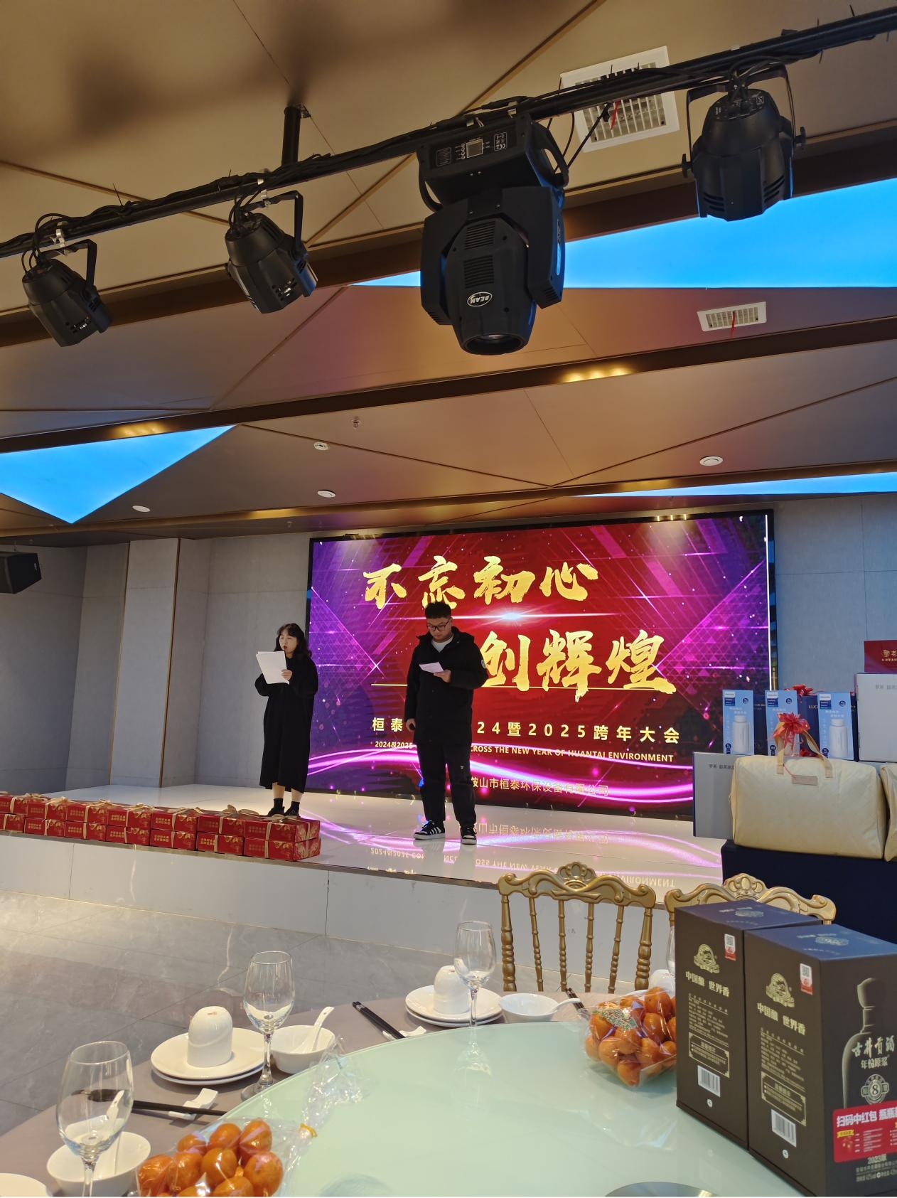 1月20日,桓泰環保公司在春盛大酒店隆重舉行2025年迎新年年會。年會現場洋溢著歡樂與祥和的氣氛,員工們展示了形式多樣的文藝節目,并參與了激動人心的抽獎環節,現場氣氛熱烈,大家對新一年公司的繁榮發展滿懷憧憬。
